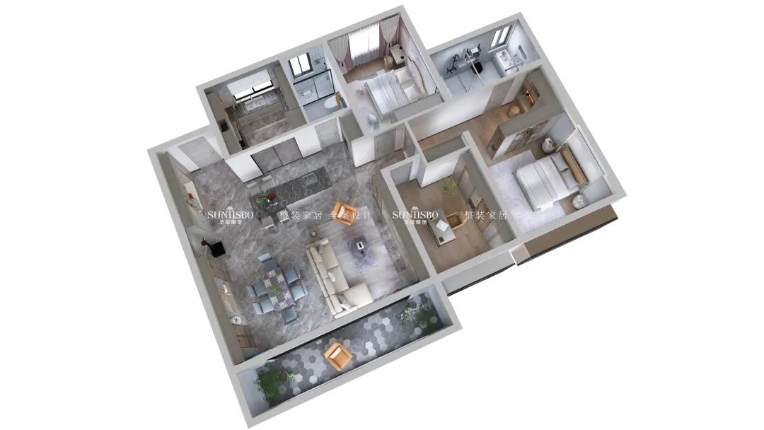 根据业主喜好,将三室两厅改造为符合业主生活习惯的家居动线;